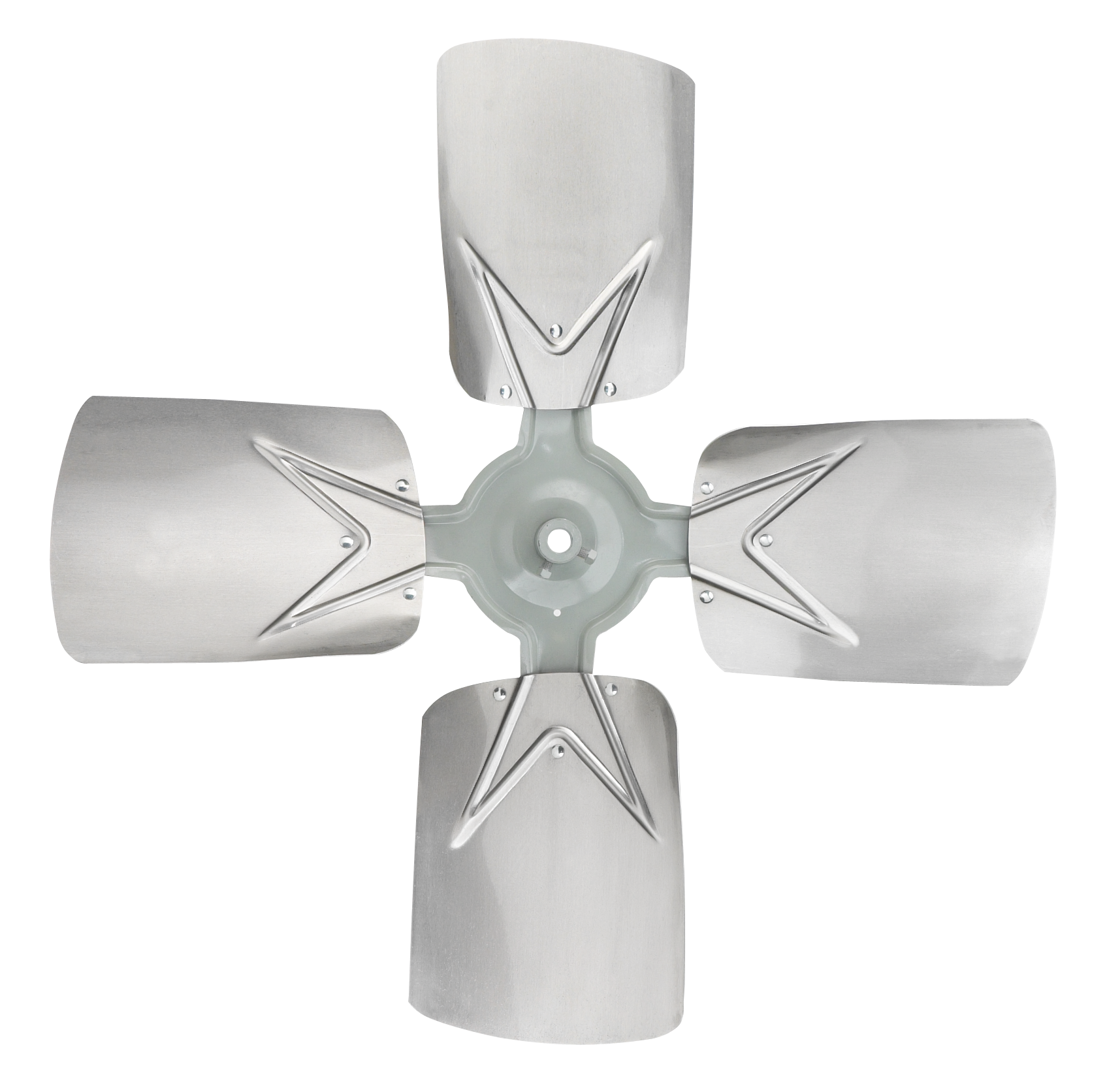Our 4-blade heavy-duty condenser style propellers are constructed of high strength aluminum blades with corrosion-resistant spiders.
