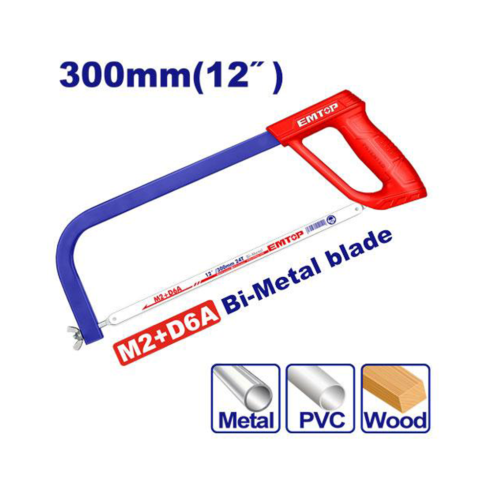 EMTOP HACKSAW FRAME 300MM(12″) HANDLE – ALUMINUM +ABS PLASTIC +TPR PLASTICS EHFE3004