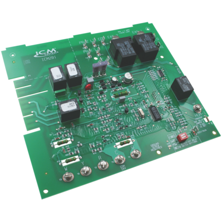 The ICM281 is a low cost replacement for the Carrier CES0110020, CES0110048 and CES0110057-xx series, furnace control boards which is used to control gas valve, ignitor, blower motor, inducer, humidifier and air cleaner.