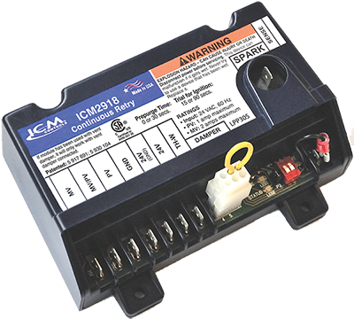 The ICM2918 Universal Intermittent Pilot Gas Ignition Control Module is a field service replacement for many popular flame rectification type of intermittent pilot ignition (IPI) modules. Provides electronic control for most intermittent pilot ignition systems used on gas-fired furnaces, boilers, and other heating appliances.