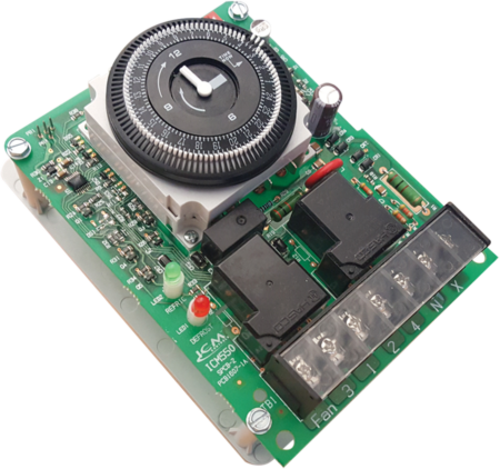 When Mode B is selected and the unit is in the timed cycle (clock dip switches in the on position), the load will be turned on with the back up source. At the end of the timed cycle, the unit will return to normal operation until the next preset interval occurs.