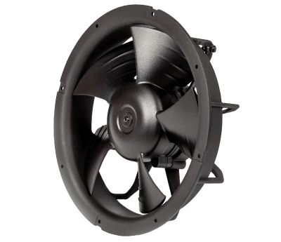 Plastic fans are made from polypropylene or composite plastic resins, with propeller diameters ranging from 2½ to 8 inches and 4 to 6 blades, suitable for low static pressure applications. The plastic may be colored for aesthetics or to include additives like UV protection and corrosion resistance. Because the color is embedded throughout, fading is minimal. Larger fan blades require additional additives to increase stiffness for variable static pressure conditions.