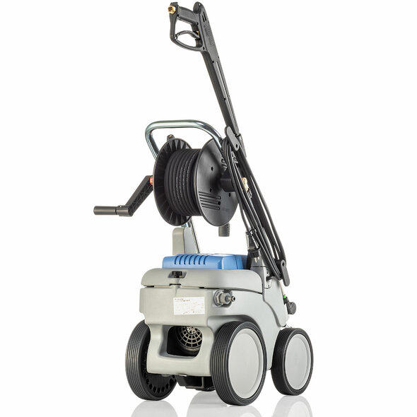 The Kränzle quadro series combines all the advantages of the Profi series and, with its double-axle chassis and 4 wheels, sets a new benchmark in terms of stability and offers maximum comfort for applications that require frequent changes of location. Only oversized gears and oil housings are used, which significantly extend the service life in tough continuous operation. And of course, the integrated hose drum with folding crank handle and up to 20 m of high-pressure hose come as a standard with many of the quadro models as well as the sturdy shock absorbing buffers and the integrated water tank.